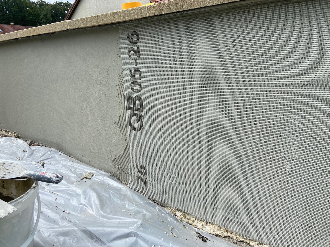 Couvreur à Colmar - Réalisation de murette, application d’un filet colle et crépi, finition taloche